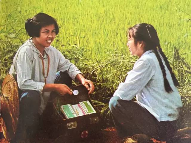 A rural doctor talks to her patient in the open crop field in Guangzhou. [Photo/southcn.com]
