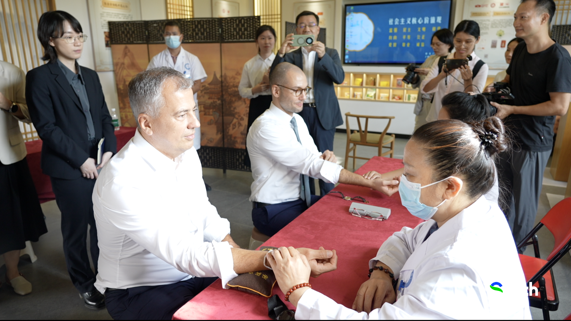 Oláh experiences TCM therapy at Shennong Caotang Museum of TCM