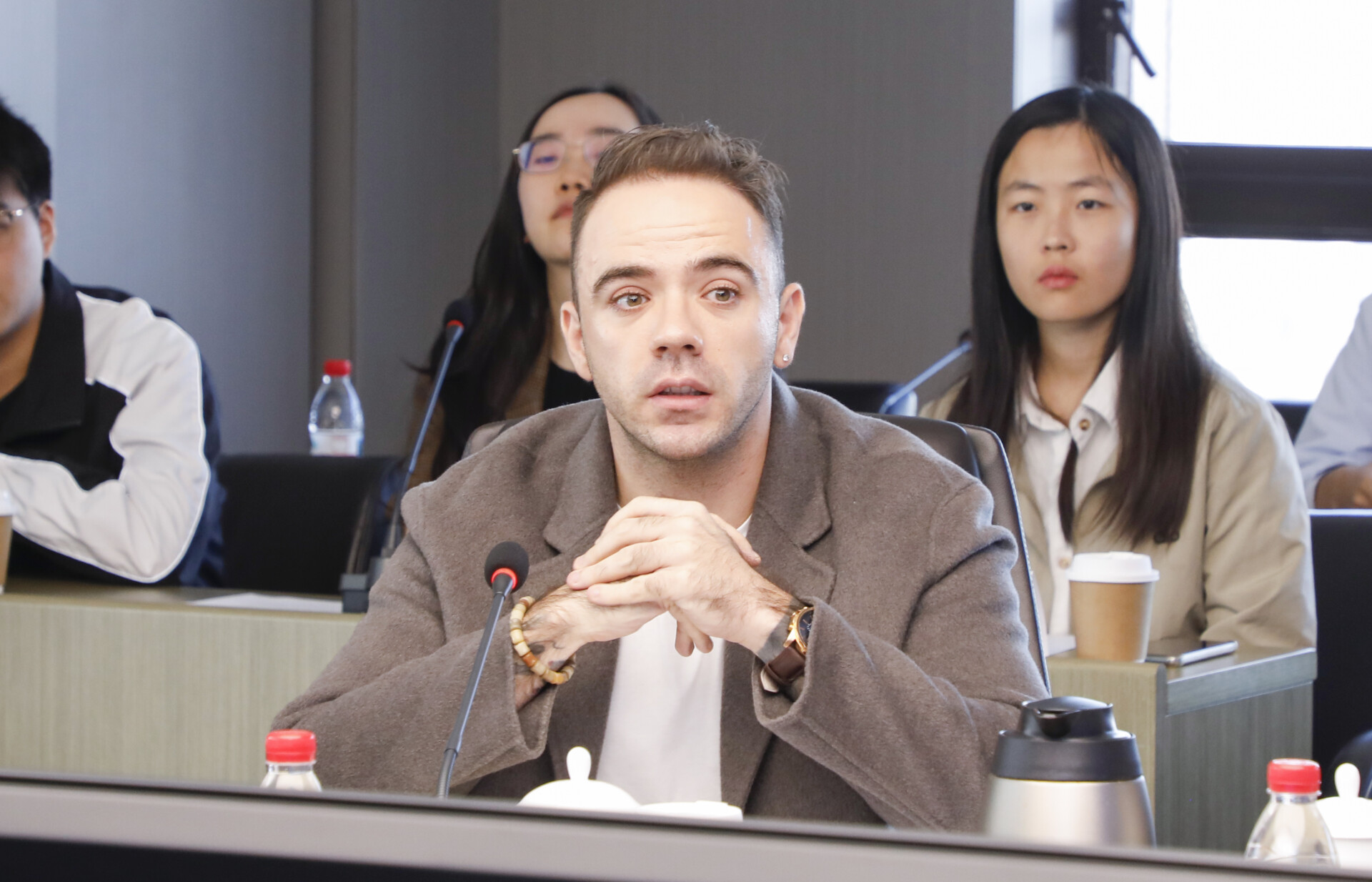 Guangzhou-based British content creator Billy speaks at a public consultation on the Guidelines for Planning & Construction of International Neighborhoods in Guangzhou held on November 24, 2025, in Guangzhou, South China's Guangdong Province.