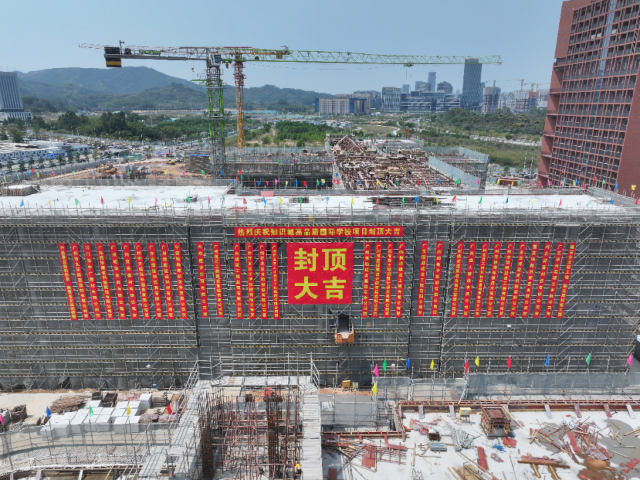 A topping-out ceremony for the teaching building of the Harrow International School for expatriates' children in Guangzhou, along with a signing event for international education exchange cooperation, was held in Huangpu District On April 8.