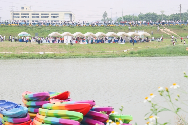 Additionally, organizers set up rest stops and product booths along the route featuring local specialties, such as Liuxi Selected brand products and dairy items.
