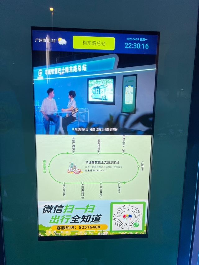A new autonomous bus line was launched on Dongfeng Road in the Yuexiu District of Guangzhou, with trial operations beginning on April 29 at 7 PM. This marks Guangzhou's first autonomous bus route on a major urban road in the city center and the first focused on culture and tourism.