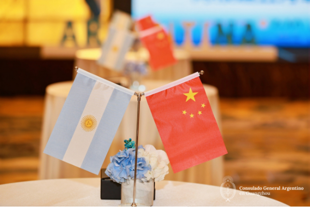 National flags of Argentina and China at the venue (Photo: Consulate General of Argentina in Guangzhou)
