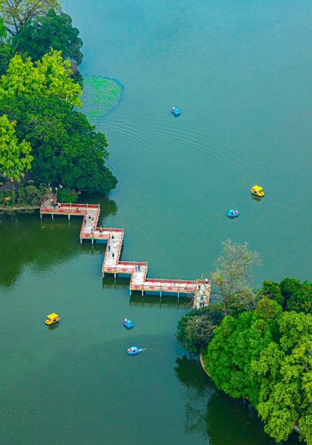 Just 500 meters from the station, Dongshan Lake Park offers a serene urban retreat with its clear waters and dense greenery. Shaded walkways under century-old trees provide a tranquil escape, and summer flowers are now in full bloom, which is perfect for a morning stroll or sunset photo session.