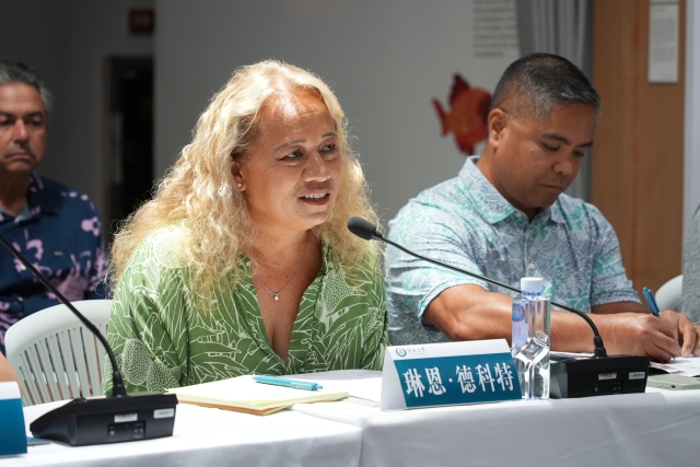 State Senator Lynn Pualani DeCoite exchanges views at Jinan University.