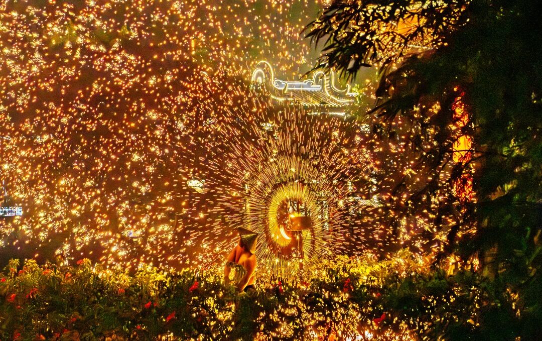 During the holiday, Lingnan Impression Garden will transform into a stage for tradition. From 10:00 to 17:00 each day, it will feature four Yingge Dance parades connecting major sights, alongside over 30 performances including lion dances, Cantonese opera, and flash mob dances. From 18:00 to 21:30, the night comes alive with molten iron fireworks (Da Tiehua), fire shows, and dazzling acts like the Fire Dragon Dance.