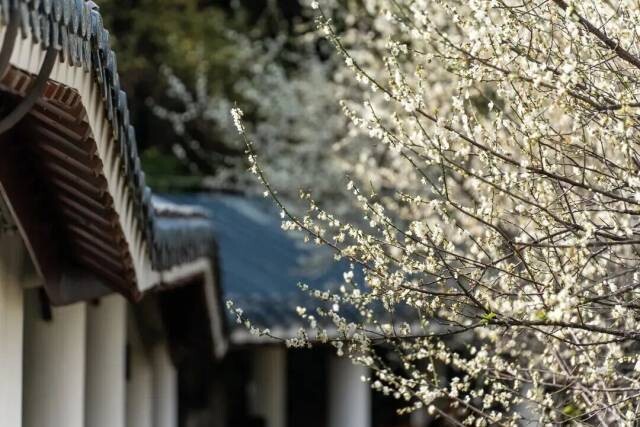 Citizen Square features more than 1,000 plum trees concentrated in Xiangxueyuan (香雪缘), Plum Blossom Hill (梅花山), and the long corridor. White and red blossoms spill across the hillside, where blue-tiled white walls create a timeless scene. Meanwhile, Xiangxueyuan offers a colorful mix of red, white, and pink blooms, and Plum Blossom Hill presents a sweeping, snow-like panorama.