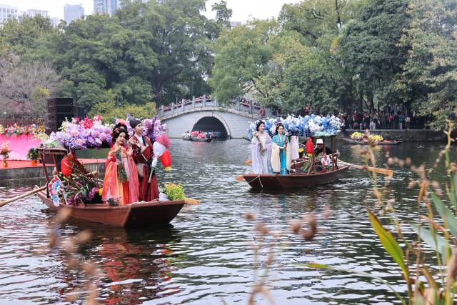 The Waterborne Flower Market will run from February 12 to 14, with related street and waterfront markets open from February 11 to 15. Now in its largest edition to date, the event has expanded from Liwan Lake to the entire Lychee Bay Scenic Area, the Cantonese Opera Art Museum and Yongqingfang. Visitors can board flower-decorated boats to cruise along the waterway, where floral displays and art installations add to the festive atmosphere.