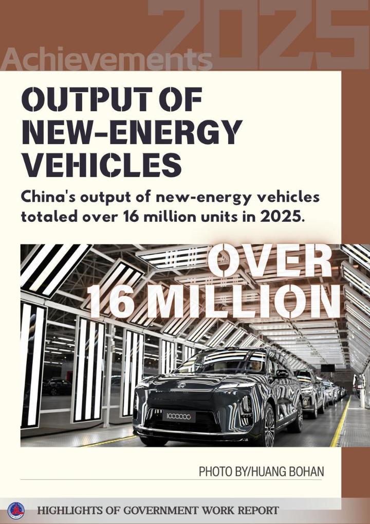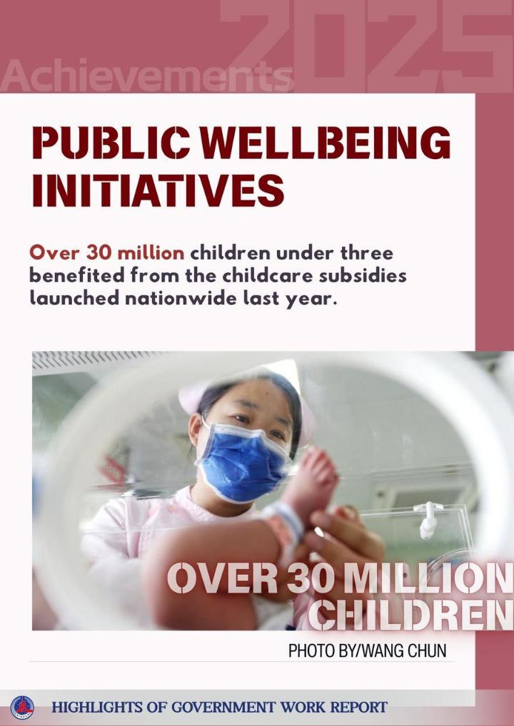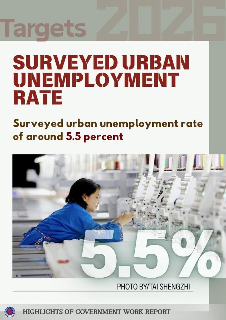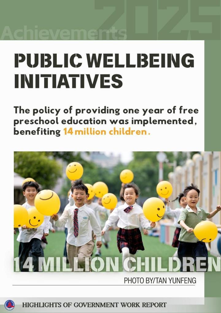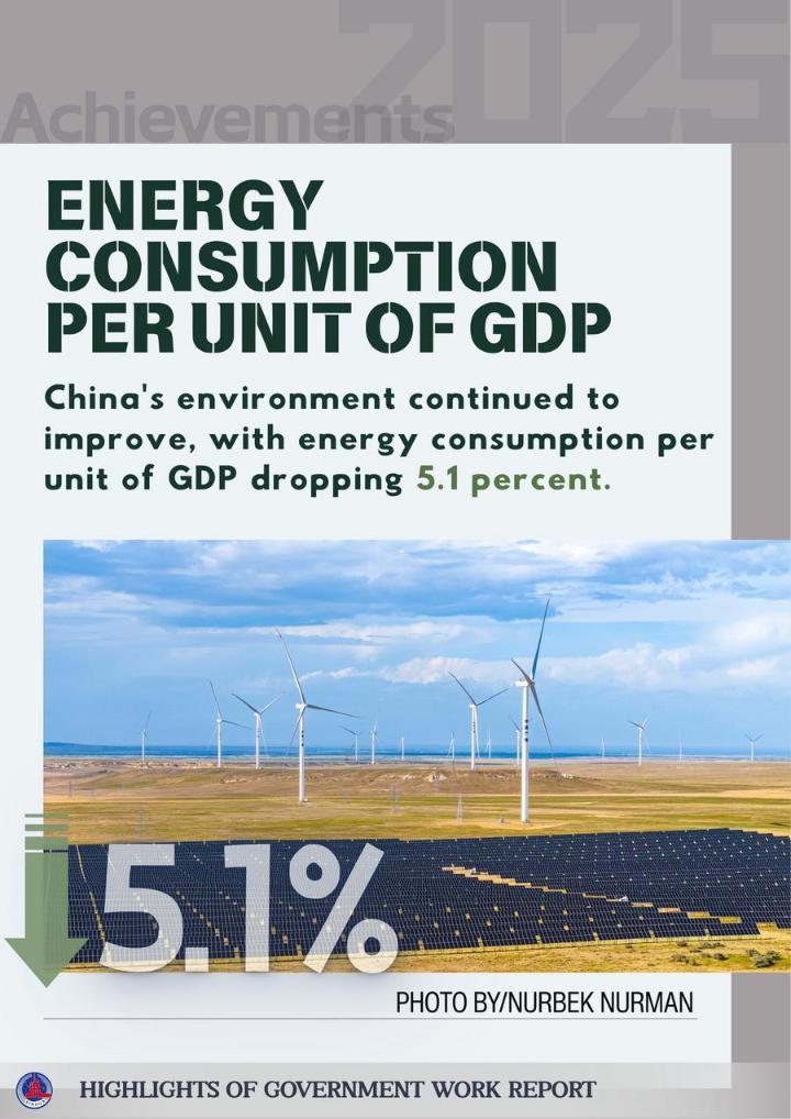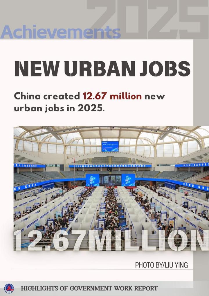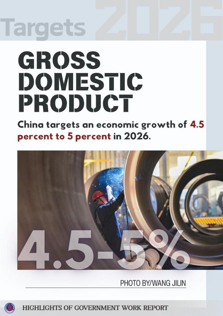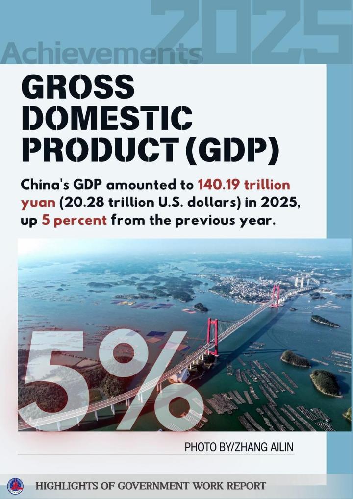 The posters below show some highlights of China's achievements in development in 2025 and the main targets for development in 2026 as mentioned in the report.