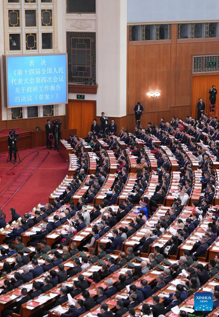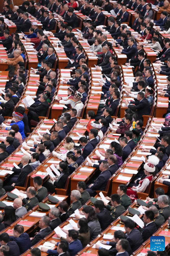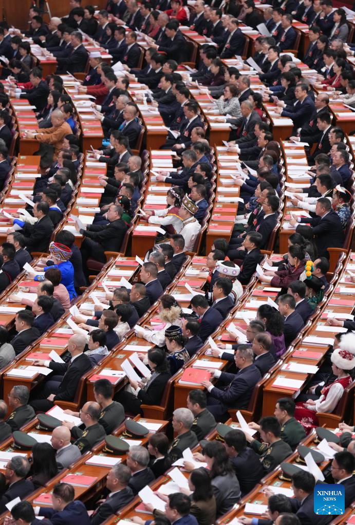 Lawmakers voted to adopt a resolution on the work report of the NPC Standing Committee, a resolution on the work report of the Supreme People's Court, and a resolution on the work report of the Supreme People's Procuratorate.