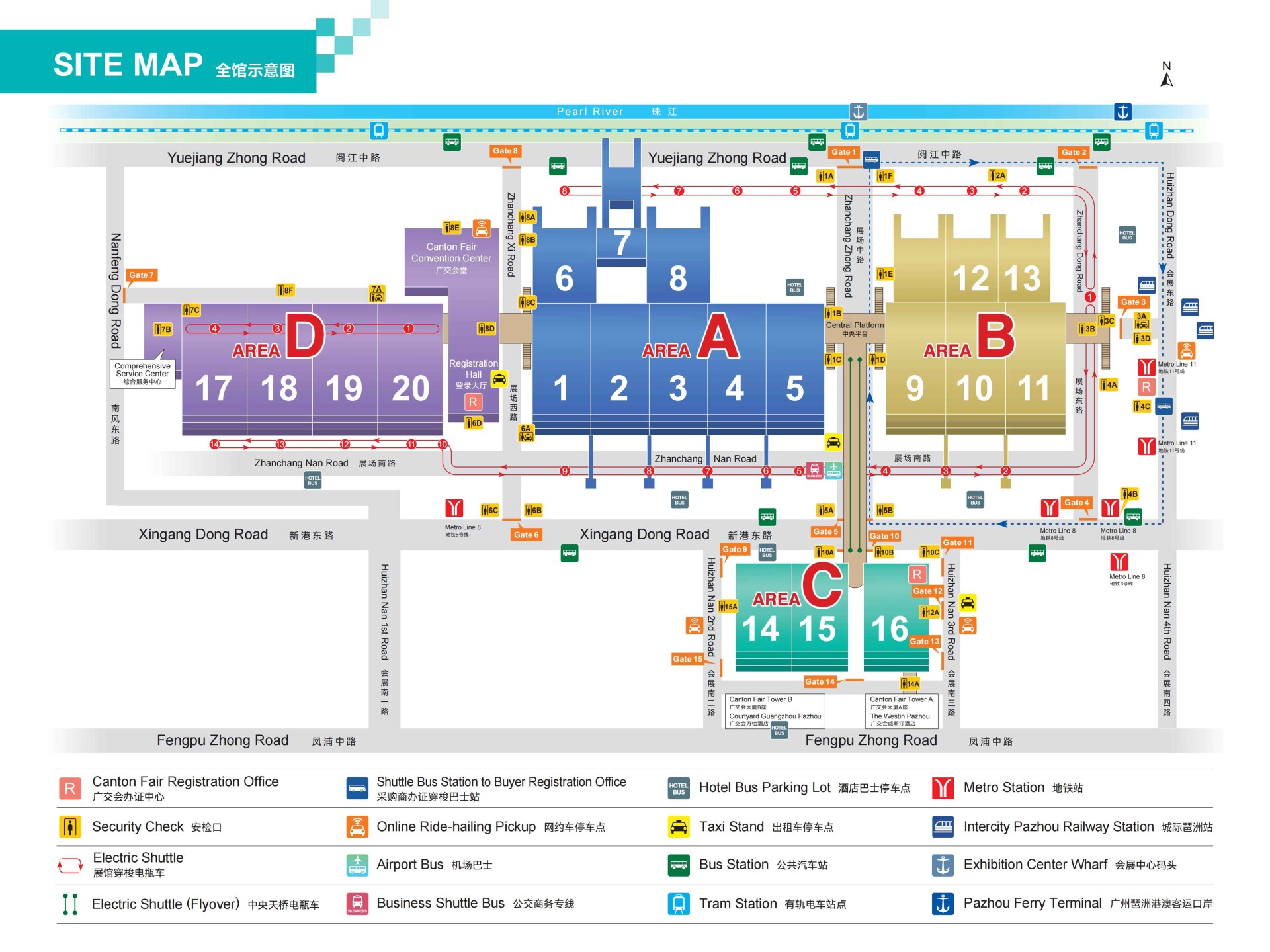 If you arrive at Guangzhou Baiyun International Airport, take Metro Line 3 and transfer to Line 8 at Kecun Station (客村). Get off at either Pazhou Station (琶洲) or Xingangdong Station (新港东), both within walking distance of the Canton Fair Complex.