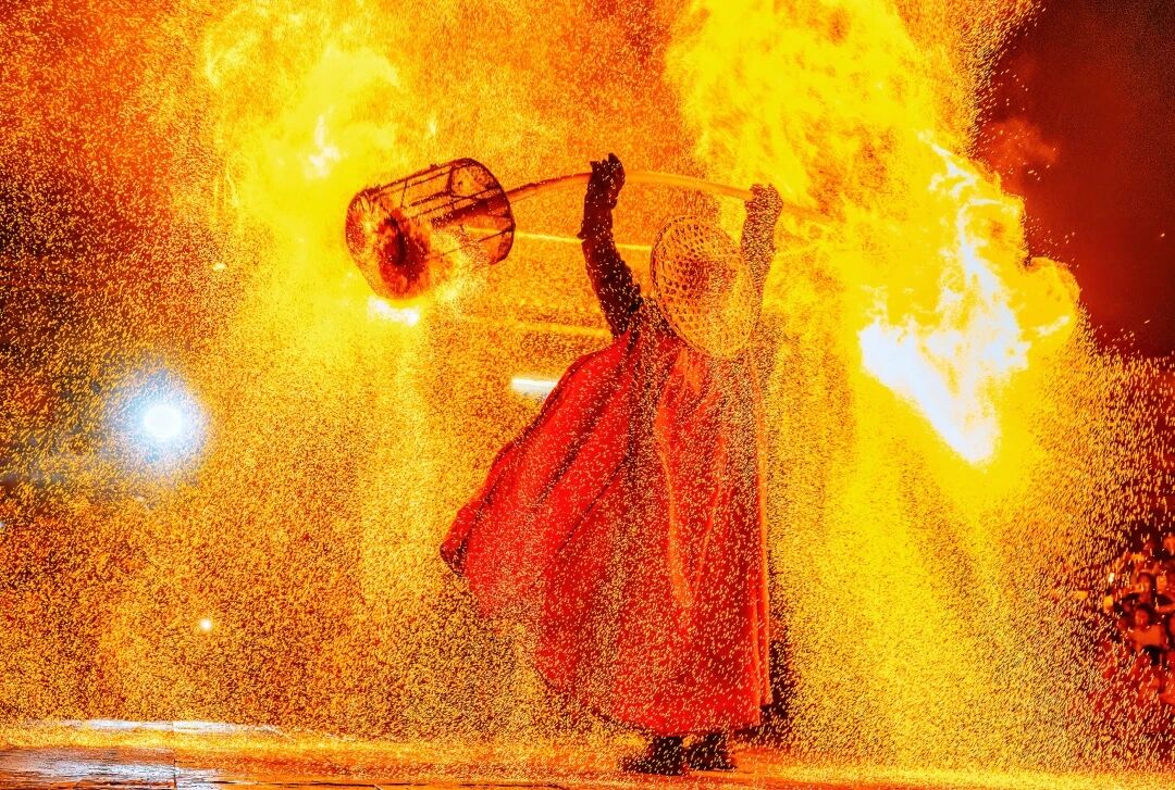 During the holiday, Lingnan Impression Garden will transform into a stage for tradition. From 10:00 to 17:00 each day, it will feature four Yingge Dance parades connecting major sights, alongside over 30 performances including lion dances, Cantonese opera, and flash mob dances. From 18:00 to 21:30, the night comes alive with molten iron fireworks (Da Tiehua), fire shows, and dazzling acts like the Fire Dragon Dance.