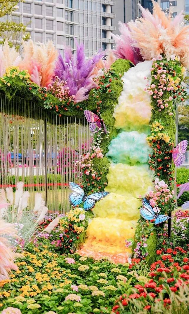 3. Cloud Terrace Flower Steps: A colorful, fairy-tale-like staircase with butterflies fluttering among blooms.