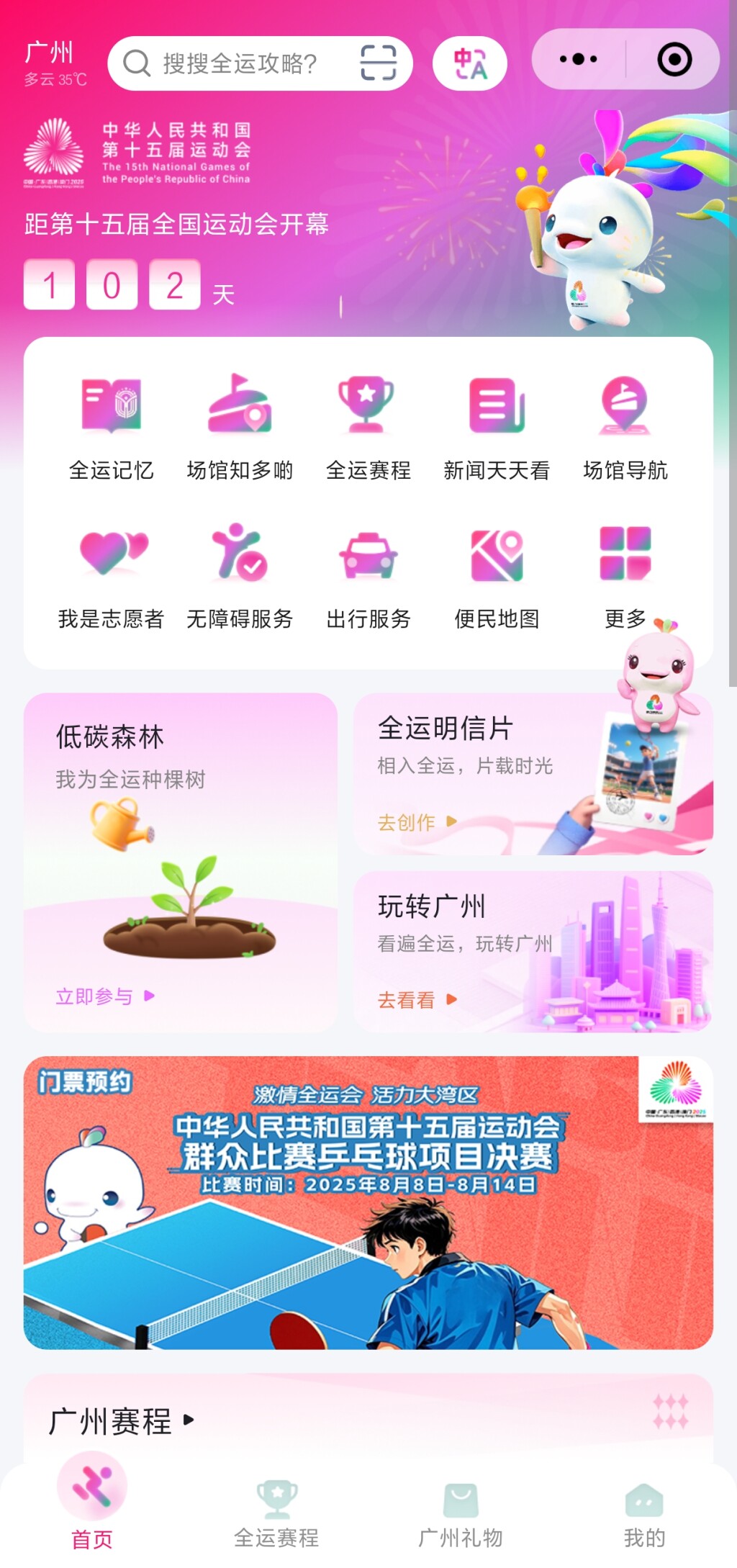A new WeChat mini-program, "National Games Guangzhou(全运广州)," was officially launched on July 29 to streamline services for the upcoming 15th National Games and Paralympic Games. This platform combines navigation services and event information in one place using smart technologies like instant translation and camera-guided directions.