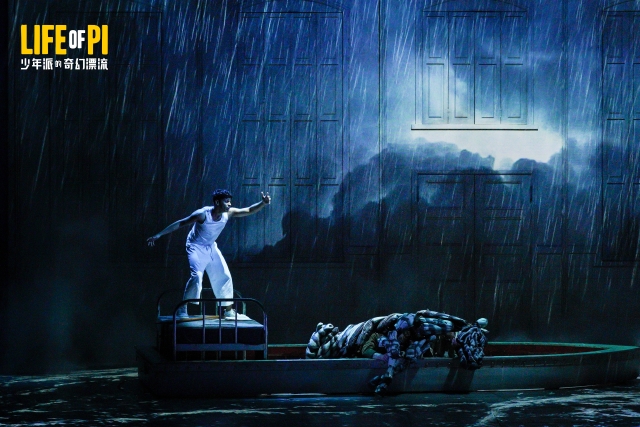 A previous stage photo of Pi's adventure in a rain-soaked scene. (Photo: Guangzhou Opera House)