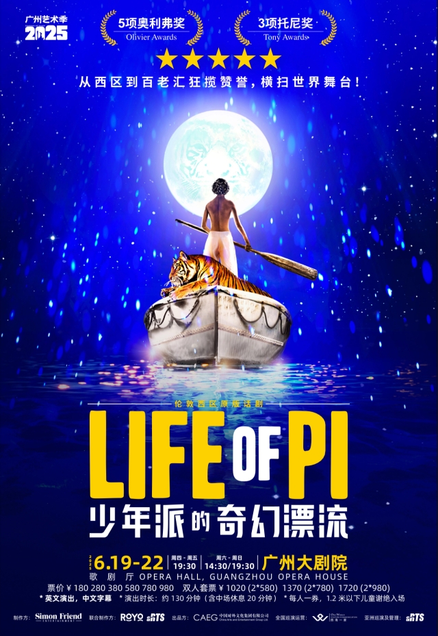 The original play in London's West End, "Life of Pi," will make its debut at the Guangzhou Opera House from June 19 to 22! Notably, the Guangzhou Opera House is offering special ticket discounts for students. This summer, join us to relive Pi's extraordinary adventure!