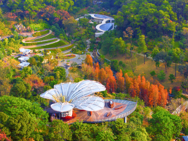 Yunluo Botanical Garden is the only botanical garden in the Guangdong-Hong Kong-Macao Greater Bay Area that offers an aerial view. Visitors can enjoy rare plants, vibrant flowers, birdsong, flowing streams, mini rainforests, and a fairytale-like atmosphere within the garden.