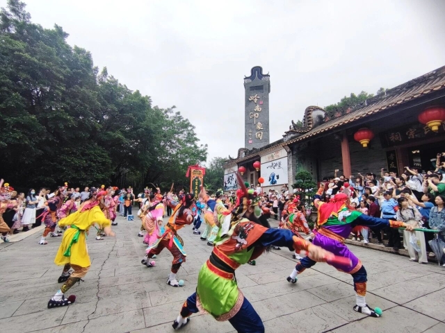 During the holiday, Lingnan Impression Garden will transform into a stage for tradition. From 10:00 to 17:00 each day, it will feature four Yingge Dance parades connecting major sights, alongside over 30 performances including lion dances, Cantonese opera, and flash mob dances. From 18:00 to 21:30, the night comes alive with molten iron fireworks (Da Tiehua), fire shows, and dazzling acts like the Fire Dragon Dance.