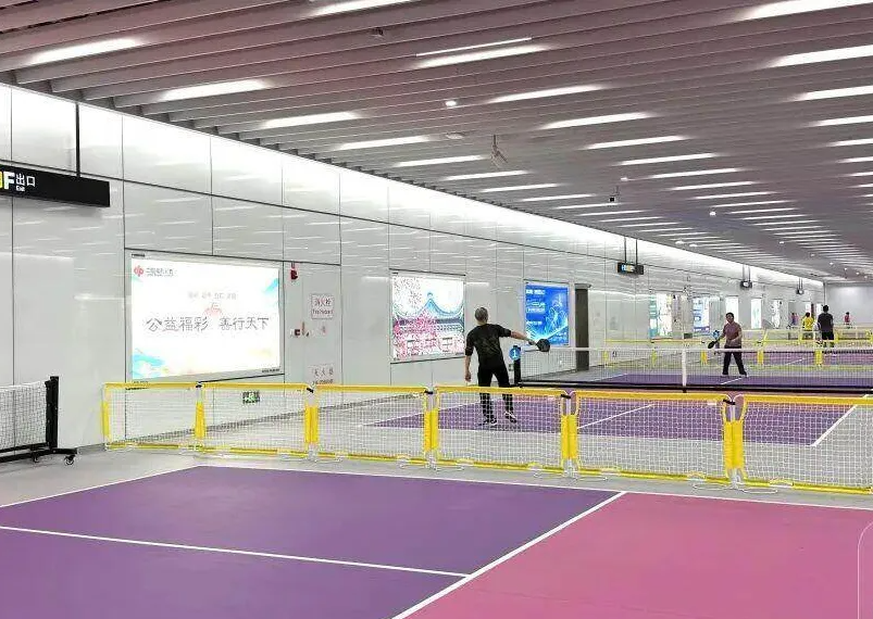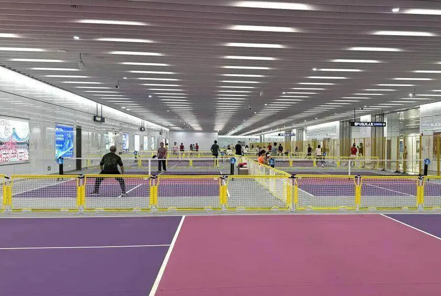 The establishment of the pickleball center inside the metro space echoes the spirit of "National Games for All" promoted by the 15th National Games and responds to citizens' needs for convenient and efficient fitness. Leveraging the accessibility of metro hubs helps build a 15-minute fitness circle, meeting residents' frequent exercise needs and enabling them to enjoy professional-level sports experiences right at their doorstep. In addition, the venue is equipped with professional facilities, a rest and refreshment area, and a training service area, offering a professional sports experience and marking a shift in sports facilities from professional setups to everyday community use.