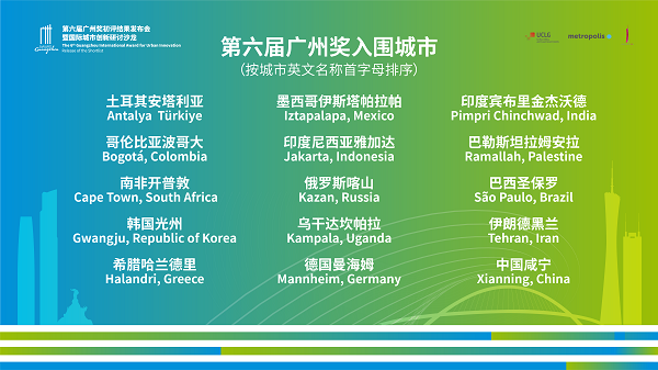 The list of cities shortlisted for the 6th Guangzhou International Award for Urban Innovation.